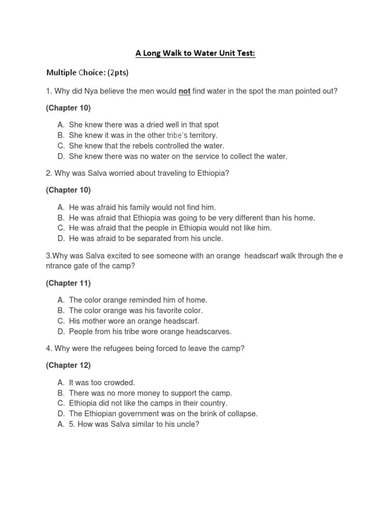 A Long Walk To Walk To Water Chapter 9 Quick Quiz Tpt