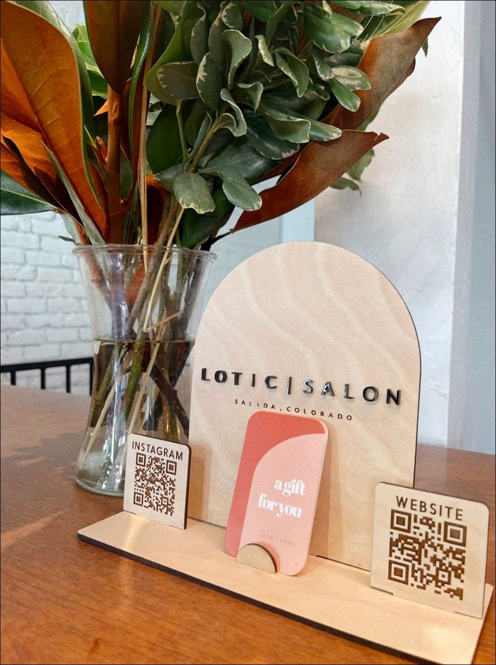 Table Top Logo Sign With Qr Codes Qr Code Display Sign Etsy Uk